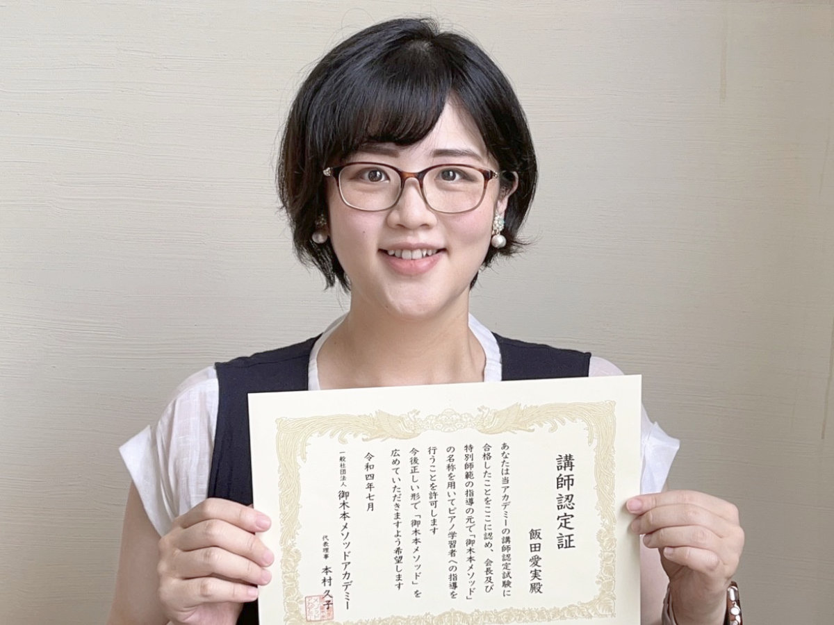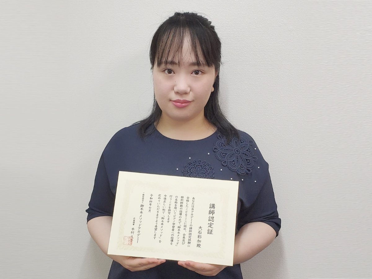今後は御木本メソッドアカデミーの認定講師として研鑽を積みながら、より一層のご活躍を心よりお祈りいたします。