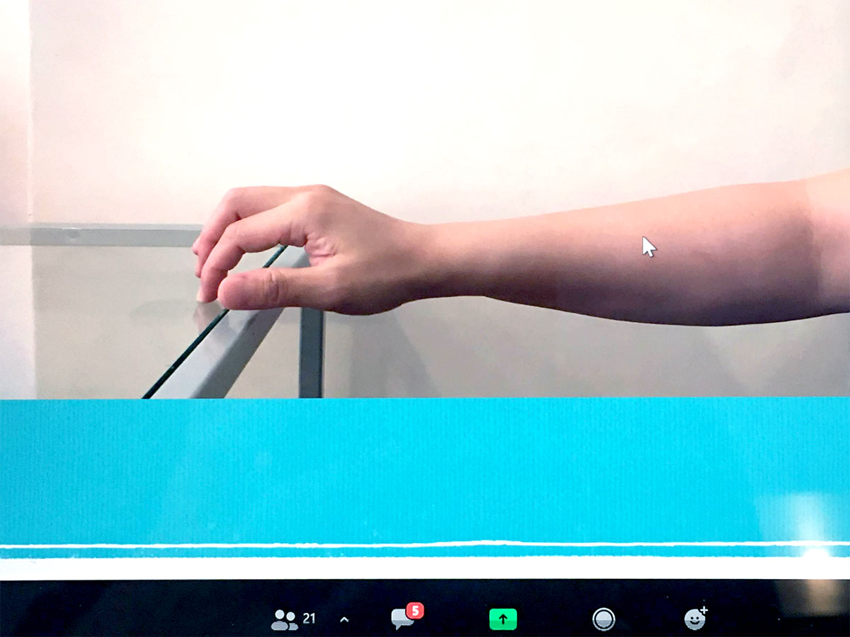 佐藤先生ご自身の演奏動画に加え、ピアノを弾く手腕の動きを習字の筆運びになぞらえて、先生ご自身が音の方向をイメージした筆跡を動画で分かりやすく説明してくださいました。体から勢いや遠心力を持って弾いていることや、やわらかくかつ体の重みに耐えうる指先に、どのくらいの圧をかけているか、手の用意をして重みを感じたときと、そうでない時の線の違いなど、具体的なタッチや音のイメージを視覚的・感覚的に理解できました。